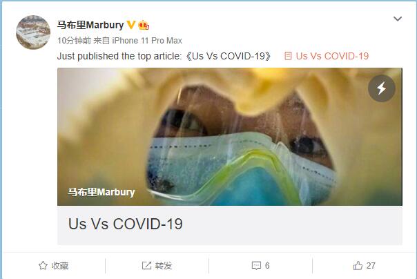 北京时间3月17日,马布里更新社交媒体 ,谈及对抗新冠疫情 ,称需要团结一致对抗新冠肺炎,并称终将战胜一切。